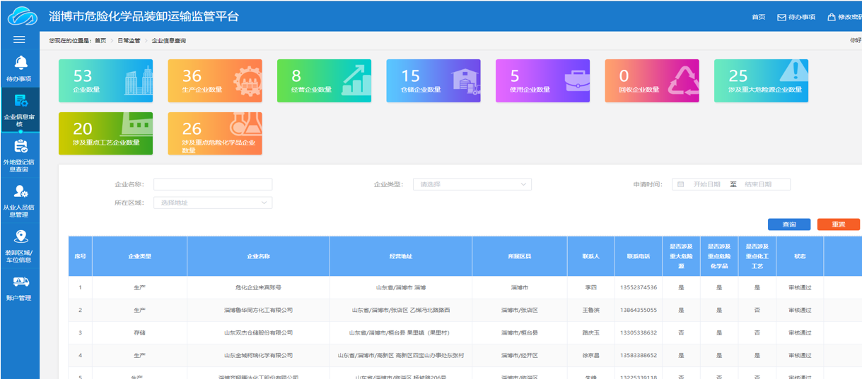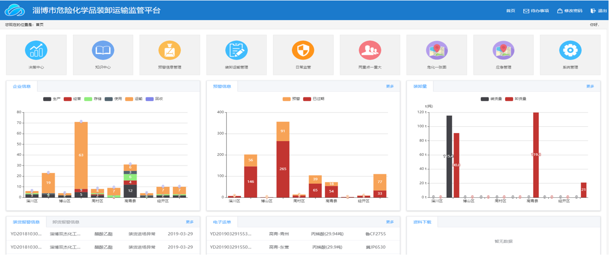 淄博市危險(xiǎn)化學(xué)品裝卸運(yùn)輸監(jiān)管平臺(tái)面向淄博市危險(xiǎn)貨物運(yùn)輸單位用戶、危險(xiǎn)貨物托運(yùn)單位用戶、危險(xiǎn)貨物駕駛員用戶、道路運(yùn)輸管理人員,分別提供以下功能: